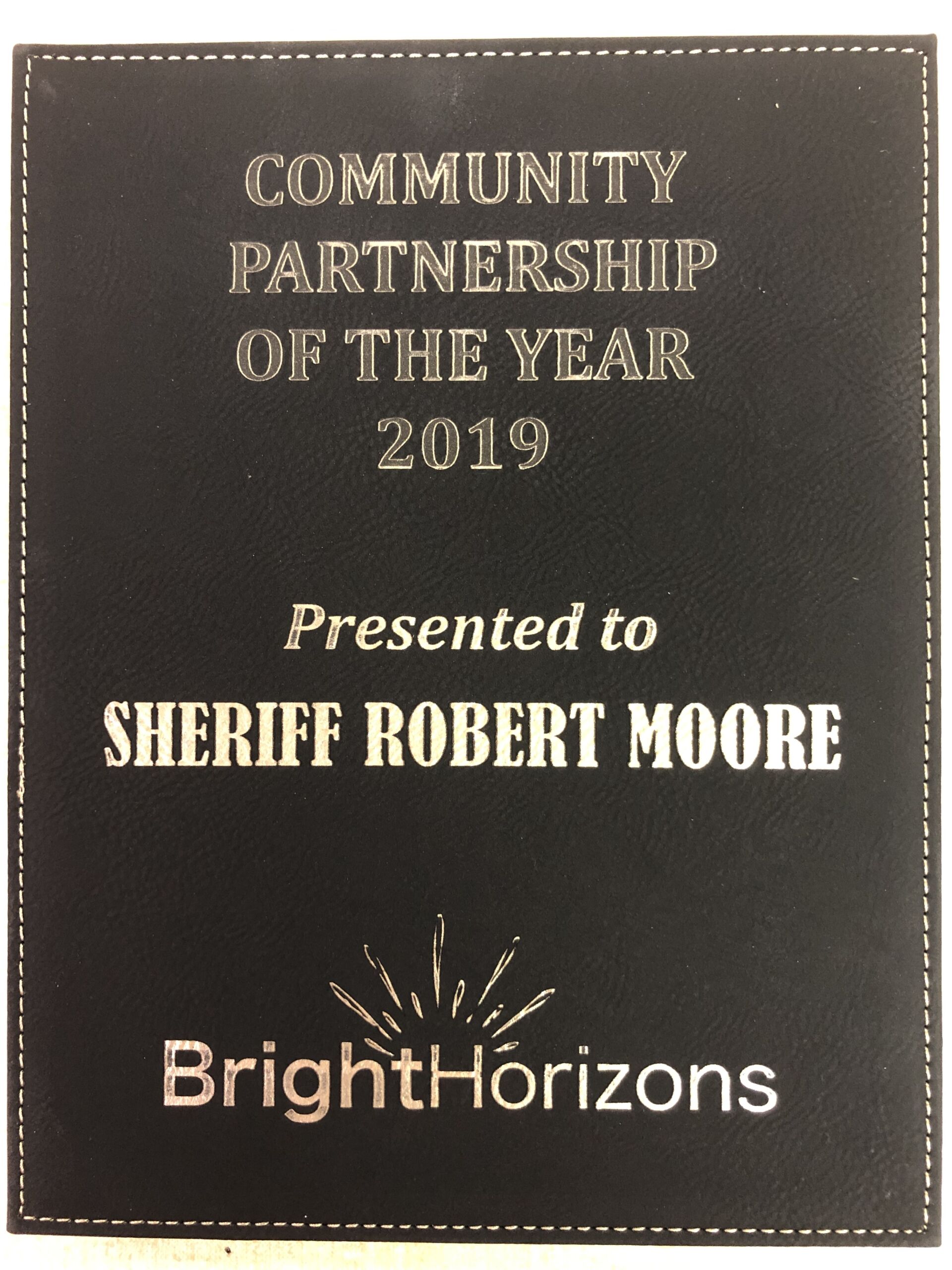 On Monday, June 24th, Bright Horizons presented their first ever “Community Partnership of the Year” award. This award came about when we noticed that our agency is among some amazing community members. This years recipient is someone who noticed a need in the community and in the jail system for a domestic and sexual assault victims advocate. This recipient has gone and continues to go above and beyond the call of duty. This years 2019 Community Partnership of the Year award was presented to Sheriff Robert Moore. More than 50 community members joined in on the surprise award presentation. It was great fellowship for a very well deserving recipient. Congratulations Sheriff Moore and thank you for everything you do for our agency, clients, and community.